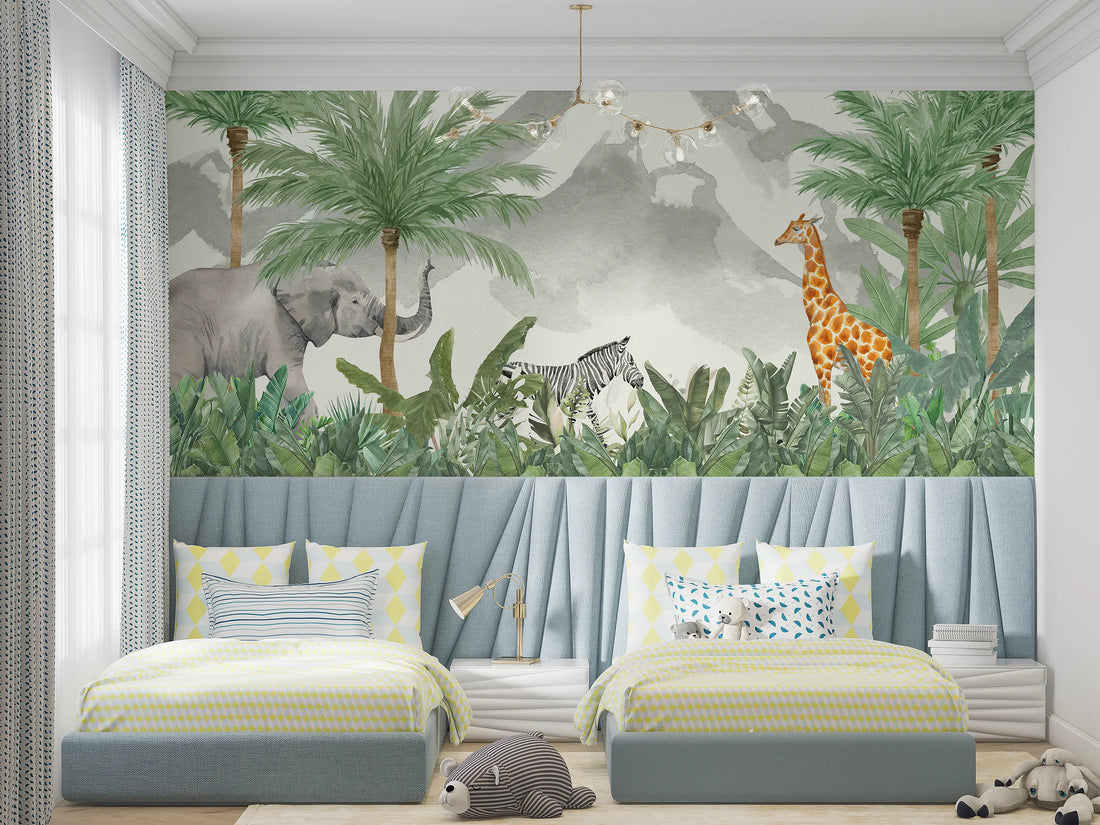 A fun-filled safari wallpaper perfect for energetic kids. Looking for more fun wall designs for...